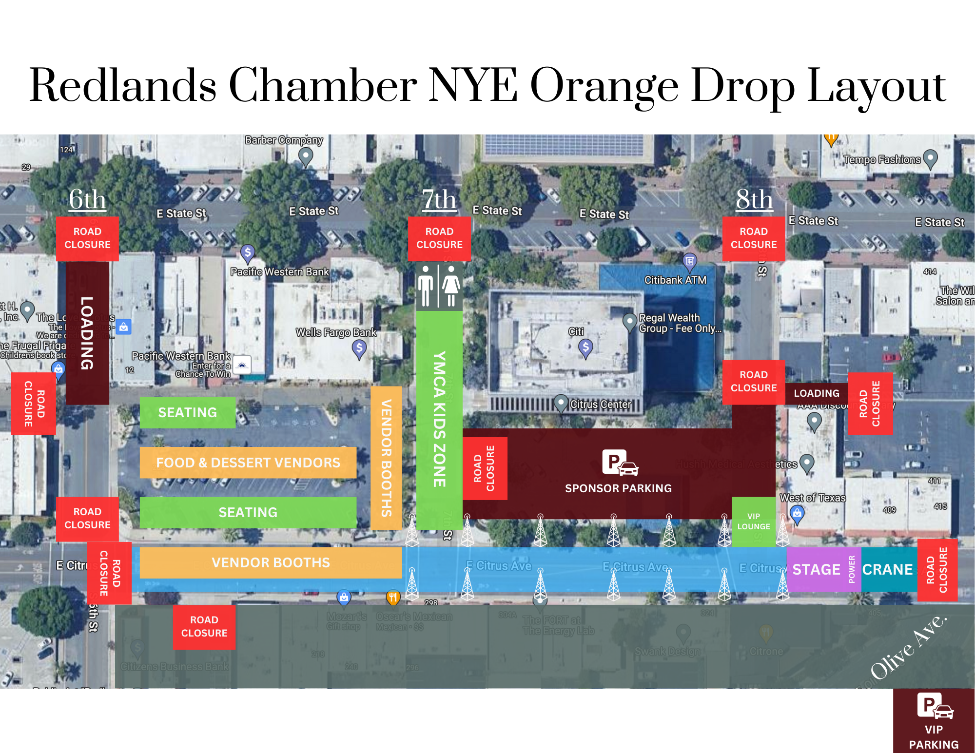 The event will take place beginning at 6PM until the drop happens at 9PM, on Citrus Ave., between 6th and 8th streets. There will also be a kids activity zone, music, confetti cannon towers, multiple food and dessert vendors, a VIP section, and more. The NYE Orange Drop will not be held at midnight, which allows for as much of the community to attend as possible, and for families to be home and celebrate ringing in midnight in their own ways.